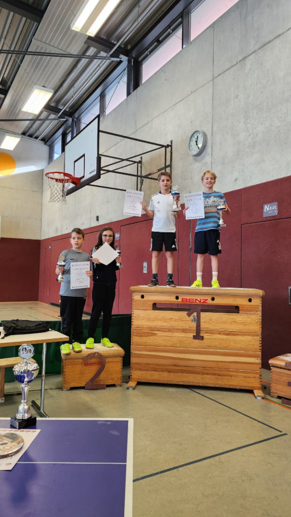 Bei den Schülern bis 10 Jahren setzte sich Maximilian Freiwald gegen Tim Pejinovic in einem äußerst spannenden Fünfsatz-Spiel durch. Vor allem bei den Doppeln ging es heiß her, die Ballwechsel konnten sich wirklich sehen lassen, und Niclas und Max konnten das Finale gegen Vinzenz Bär und Theo Huchler gewinnen.