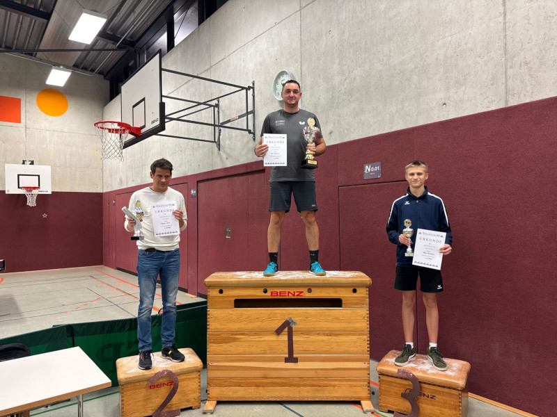 Auch im Doppel A/B war Jakob Benedikter ganz oben auf dem Treppchen zu finden, bei der Doppelzulosung bekam er den spielstarken Gastspieler Damir Prstec zugelost, die beiden konnten sich im Halbfinale und Finale gegen Lea Bräuer/Stephan Götz und Dominik Prahl/Werner Höra durchsetzen.